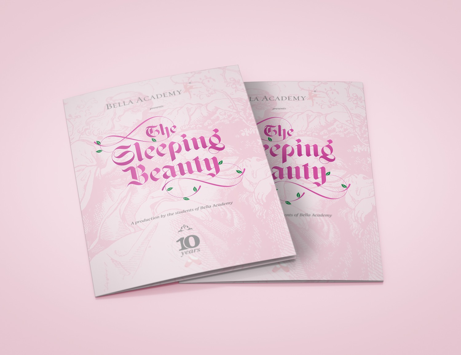 In 2019, Bella Academy produced ‘The Sleeping Beauty’ ballet, performed by their students. The logo we designed for the production represented the dreamy overtone of the fairytale itself. To mark the 10 year anniversary of Bella Academy, we printed the passes with gold foiling, and in 4 colours to indicate the different sections in the auditorium. We also designed the programme cards, standees and staging area backdrop.